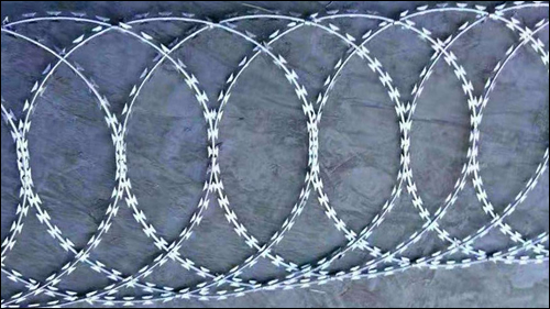 Sharp razor wire with metal strips for high-security fencing. Sharper than barbed wire, acts as a strong psychological and physical deterrent.